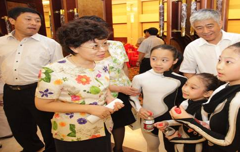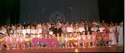 2009年9月5日朱程清副市长在教师节颁奖庆典结束后与开云官网杂技专业学生合影